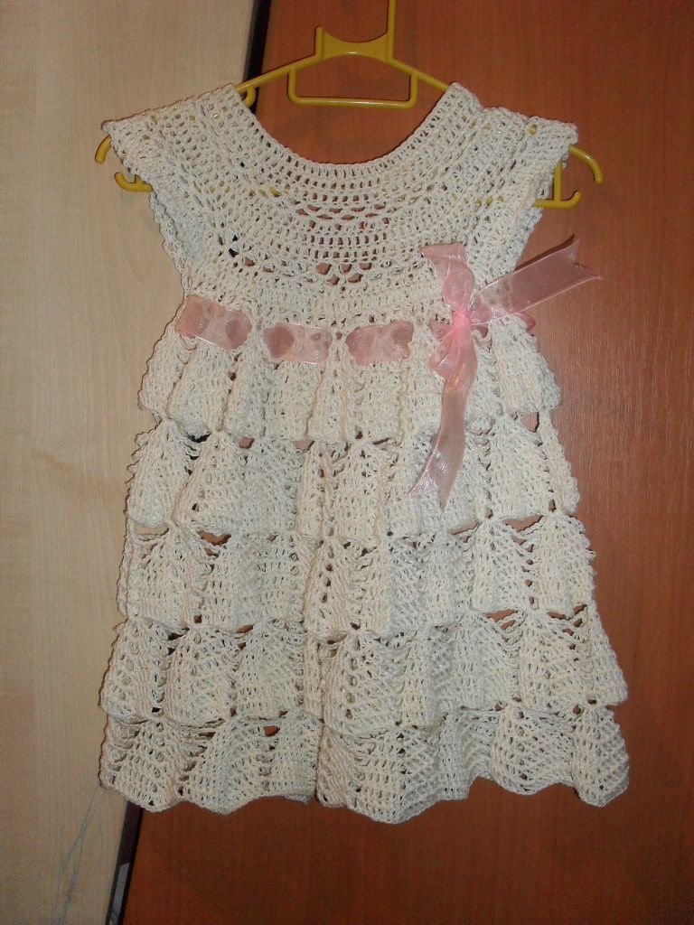 Ажурное платье для девочки, р. 6-9 мес. Цена 00 р Цвет молочный, нитки - 100% хлопок.